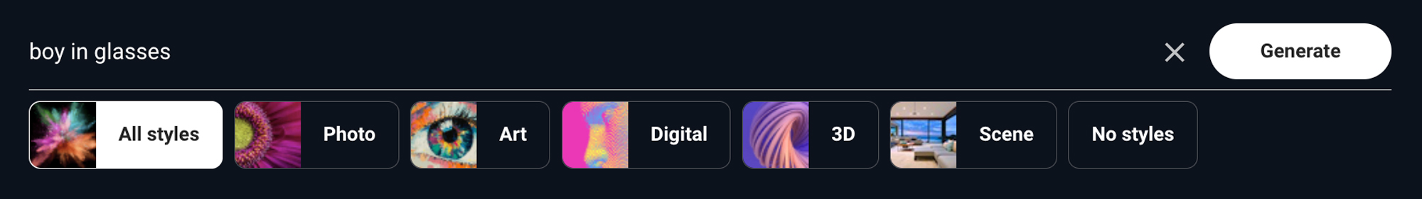 มีสไตล์ให้ใช้กับ Prompt ของฉันมากแค่ไหน? เช่น ฉันสามารถเลือกฟิลเตอร์แล้วคลิกสร้างภาพได้เลยใช่ไหม? สร้างภาพ 3D ได้เพียงคลิกเดียวเลยใช่ไหม? เพราะถ้าที่ไหนมีระบบนี้จะช่วยให้งานของฉันได้ผลลัพธ์ที่ดีกว่าที่อื่น