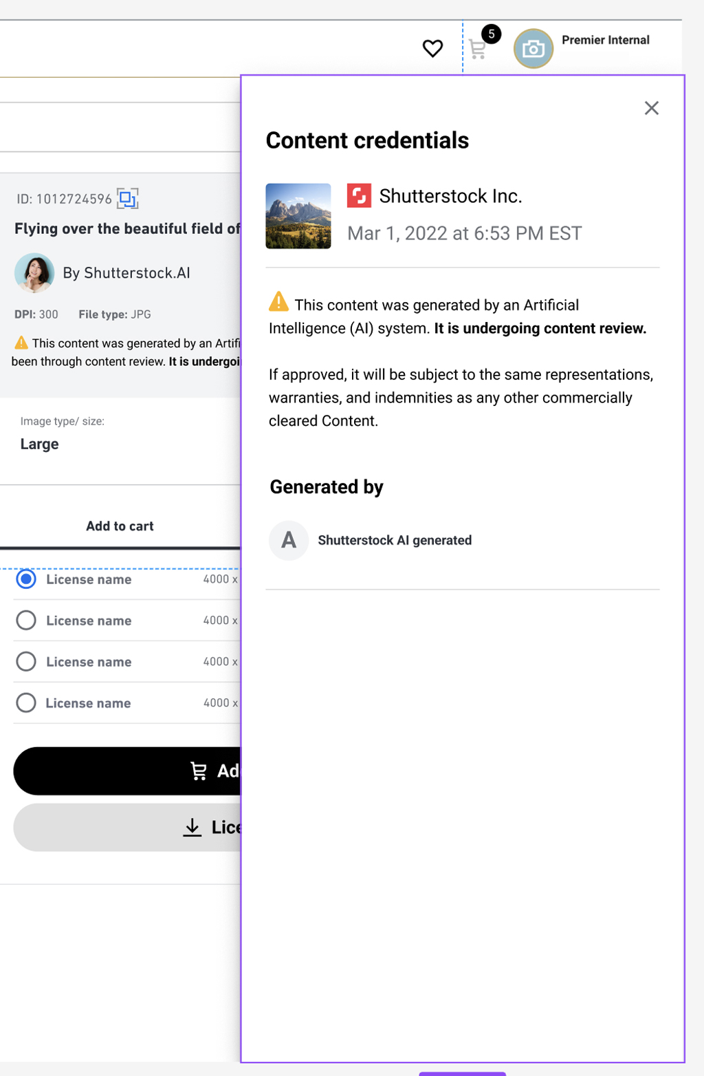 ขั้นตอนนี้ถูกนำเข้ามาในแพลตฟอร์มของ Shutterstock ที่หลาย ๆ คนเคยใช้งานอยู่แล้ว ทำให้ขั้นตอนขอใช้สิทธิ์การใช้งานภาพจาก AI ง่ายดายขึ้น ทีมงานของคุณที่นำภาพไปใช้จะได้หมดกังวล