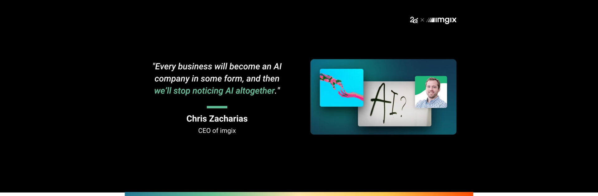 คุณ Chris Zacharias กรรมการบริหารของ imgix กล่าวไว้ว่า “ไม่ช้าก็เร็ว ทุกธุรกิจจะกลายเป็นธุรกิจที่ใช้ AI เพื่อเพิ่มศักยภาพในการทำงานทุกที่ ถึงแม้จะมีการใช้ที่แตกต่างกันในแต่ละธุรกิจก็ตาม จนในที่สุด AI จะกลมกลืนไปกับการทำงานจนเราไม่รู้สึกตัว” เช่น