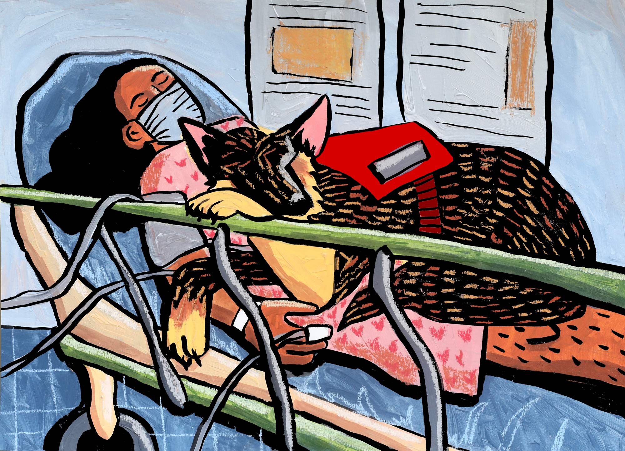 การฝึกฝนงานศิลปะของฉันเริ่มเปลี่ยนไปหลังจากที่ฉันได้รับการวินิจฉัยว่าเป็นโรค Tethered Cord Syndrome (TCS) และเมื่ออาการลุกลาม ฉันเริ่มสูญเสียความสามารถในการเดินหรือขับรถ หมายความว่าฉันไม่สามารถหยิบวัสดุจากร้านขายงานศิลปะได้อย่างอิสระอีกต่อไป และไม่สามารถเดินไปรอบ ๆ สตูดิโอโชว์งานศิลปะได้อีก