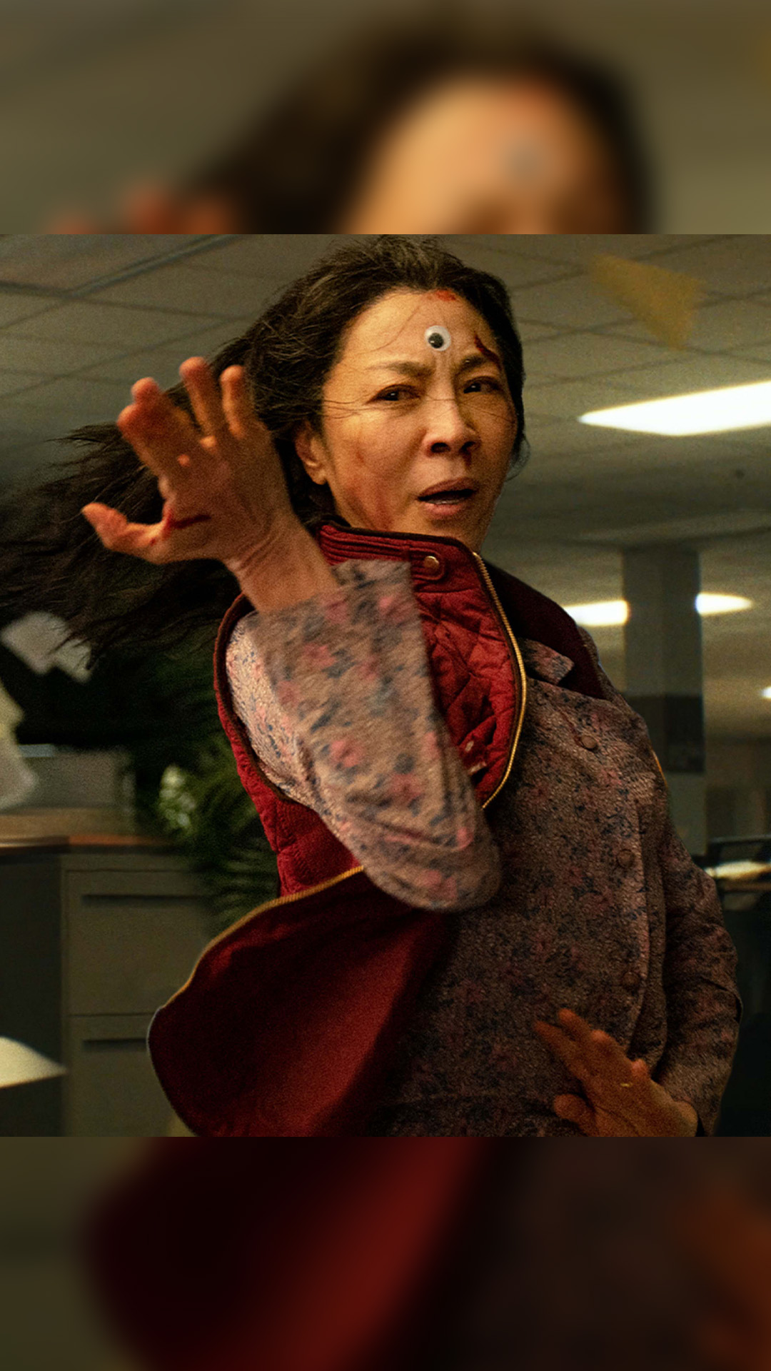 ถ้าคุณยังไม่เคยดูหนังเรื่องนี้ เราจะสรุปสั้น ๆให้คุณเข้าใจ: นางเอกที่สุดแสนธรรมดาชื่อว่า “Evelyn” นำแสดงโดยนักแสดงหญิงรางวัลออสการ์ “Michelle Yeoh” ถูกลากเข้าไปพัวพันกับการต่อสู้ระหว่างมิติโดยที่เธอต้องต่อสู้กับแหล่งที่มาของความชั่วร้าย และต้องปกป้องมิติความเป็นจริงทั้งหมด
