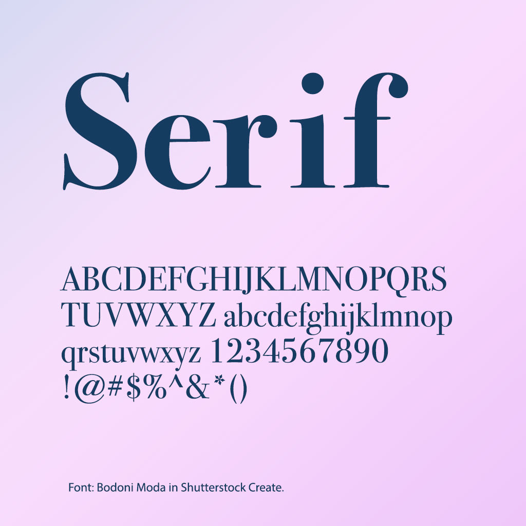 ฟอนต์นี้มีการตวัดที่บริเวณต้นและปลายของอักษร มักใช้ในงานข่าวหนังสือพิมพ์ แสดงให้เห็นถึงความน่าเชื่อถือและความเป็นทางการ ในอดีตสื่อสิ่งพิมพ์มักใช้ฟอนต์นี้อย่างแพร่หลายเพราะง่ายต่อการอ่านจากซ้ายไปขวา ฟอนต์ในตระกูลที่เกี่ยวข้องคือ