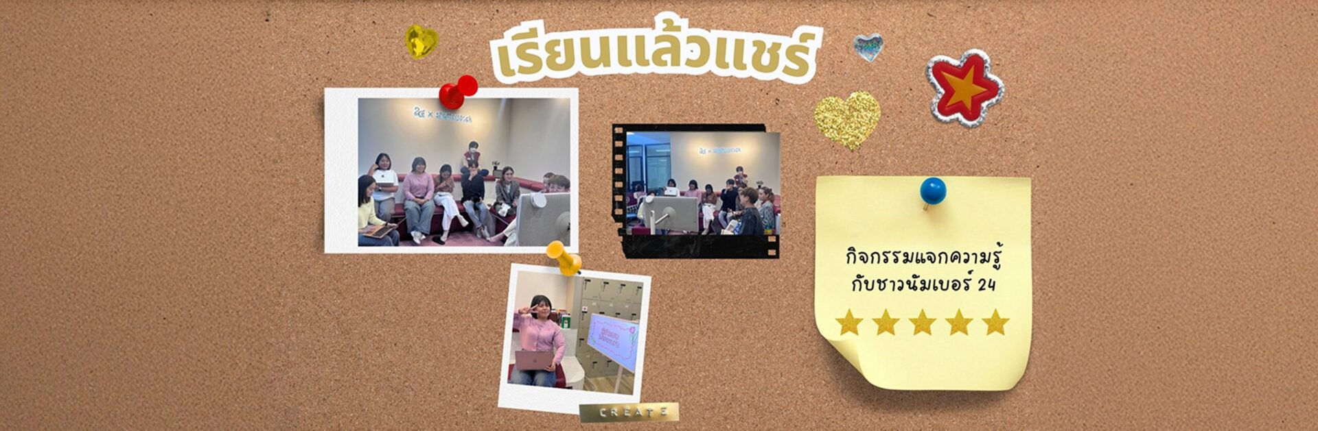 ที่ Number 24 เราไม่ได้แค่เรียนแล้วจบ แต่มีวัฒนธรรม “เรียนแล้วแชร์” ใครเรียนคอร์สไหนแล้วอิน ก็เอามาเล่ากัน ชวนคิด ชวนลอง สนุกกว่าเรียนคนเดียวเยอะ