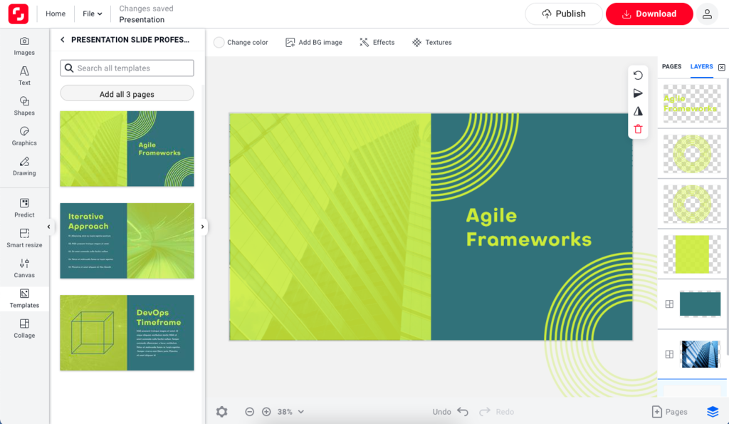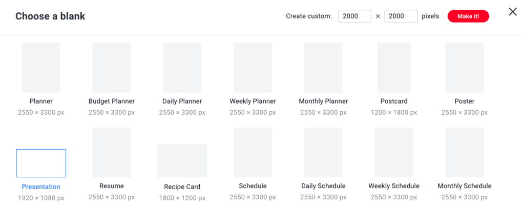 คุณสามารถใช้ฟังก์ชั่น Create เพื่อใช้เทมเพลตทำพรีเซนต์ รวมถึงสามารถตัดต่อภาพจาก Shutterstock และภาพส่วนตัวที่อัพเข้าไปได้เพียงไม่กี่คลิก