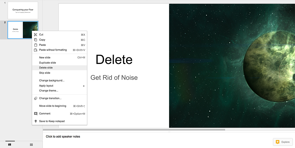 ทั้งภาพและพื้นหลังภายในสไลด์ คือสิ่งสำคัญในการเล่าให้ประสบผลสำเร็จ คุณคงไม่ชอบถ้ามองพรีเซนต์ตัวเองแล้วรู้สึกว่า “เห้ย ทำไมหัวข้อกับข้อความมันเยอะขนาดนี้นะ”